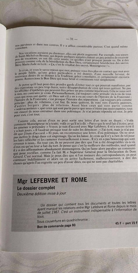 Nous publions ci-dessous de larges extraits de la conférence donnée par S. Exc. Mgr Lefebvre à Ecône le 9 septembre, à l’issue la retraie sacerdotale. Monseigneur y répond aux arguments théologiques de Dom Gérard développés dans sa déclaration publiée par le journal Présent le 18 août 1988 et en démontre la faiblesse.
