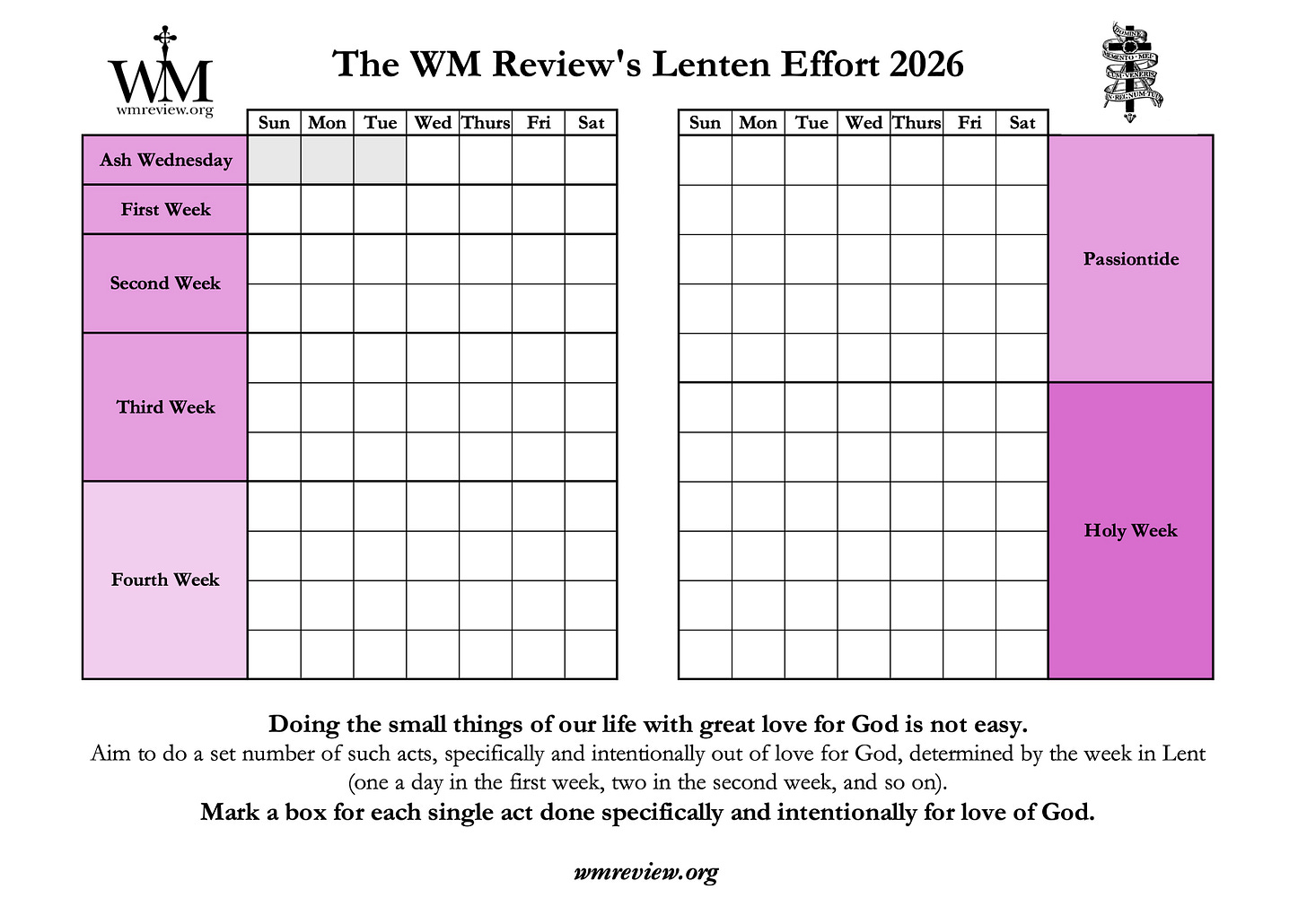 The WM Review's Little Lenten Effort for 2026