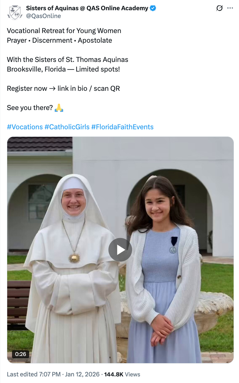 But admiration is not the only response, for this is not just any religious order. The Sisters of St Thomas Aquinas, Florida, are what others call “sedevacantists.”